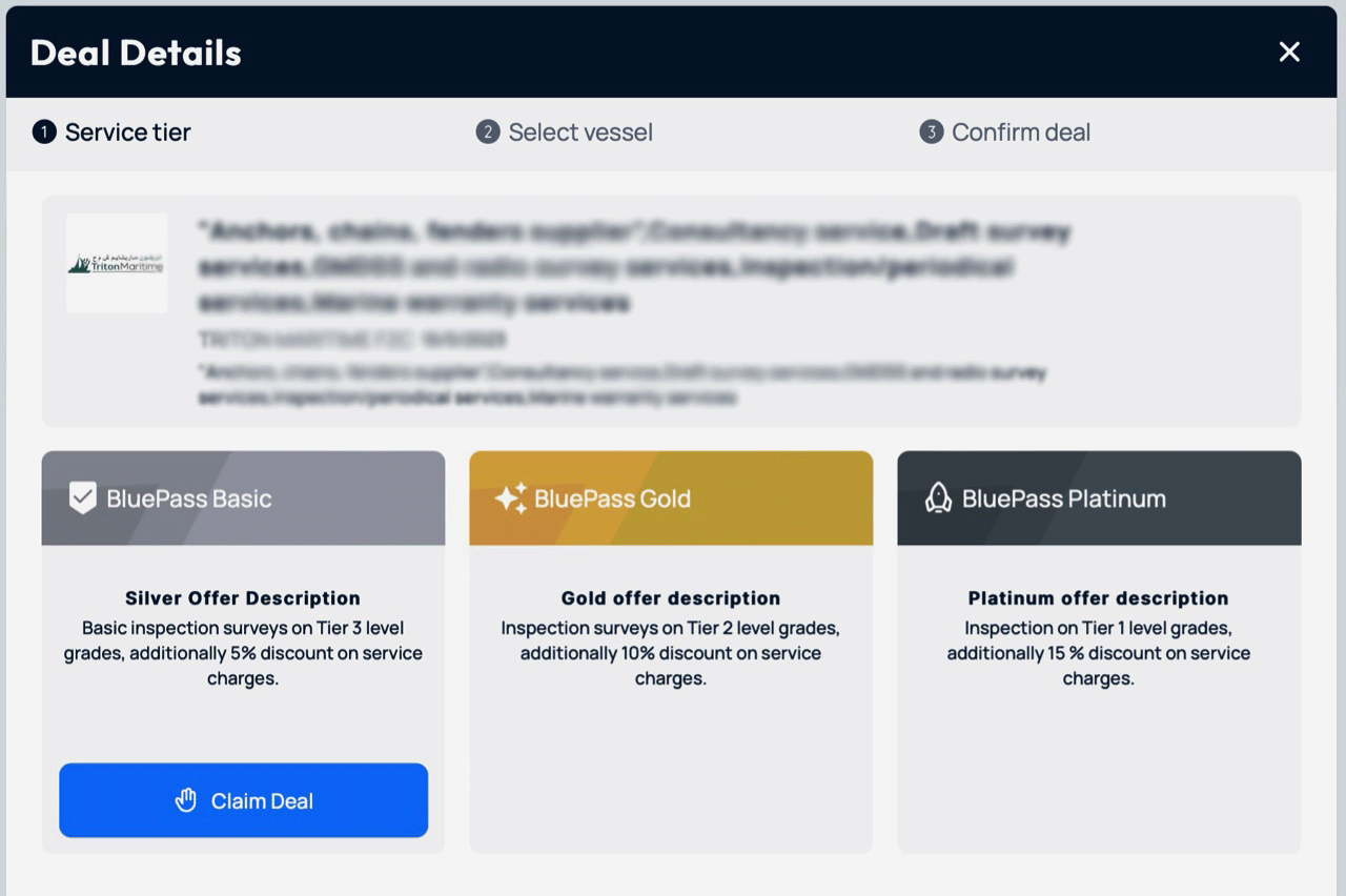 Service providers offer exclusive deals and discounts on their services and Blue Pass easily allows ship owners and operators to access these benefits through the platform. Both parties can earn points whenever they complete deals.