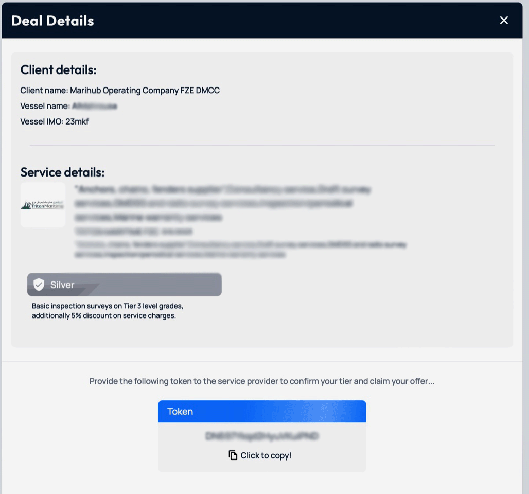 3. Ship owners can claim services/offers, generate a code and send it to the service provider to validate their claim.