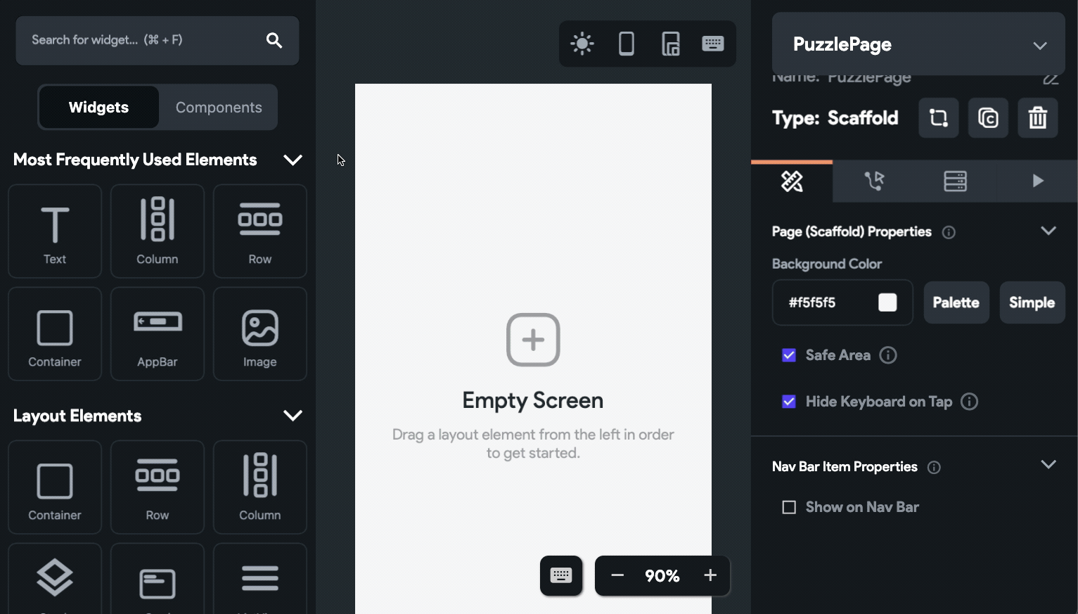 - Drag and drop an AppBar widget onto the canvas.