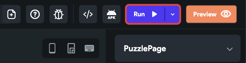 You can use the Run button present on the Tool Bar (present on the top) of FlutterFlow to test out the puzzle on your web browser.