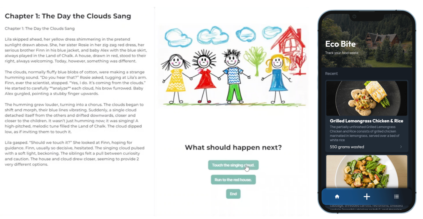 Similarily, to create Sprout, an app where kids can upload a drawing, and then engage in a choose-your-own adventure story inspired by their drawing (while also learning vocabulary words for their grade-level), Sirihaasa Nallamothu, Shaan Doshi, and Rhea Rai used a custom FastAPI endpoint to make calls to Imgur API for image uploading, Luma API for image generation, and Gemini Flash 2.0 for story generation, processing inputs & inputs between each call.