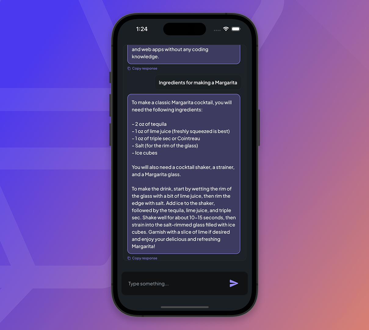 Now that we have the API call actions defined, we just have one thing left to do – displaying the user queries and ChatGPT responses inside the bubbles.