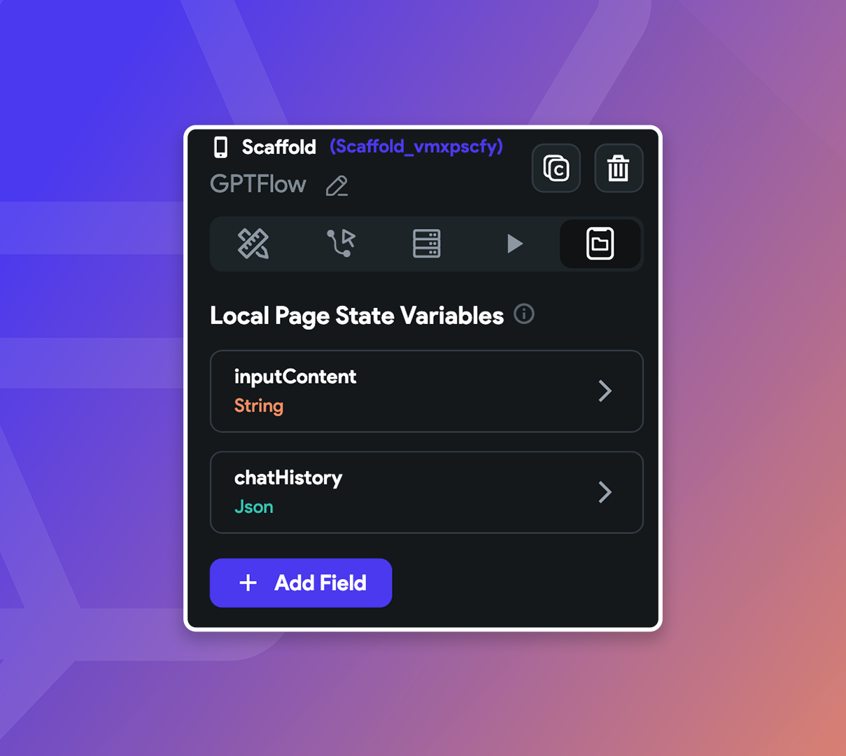 chatHistorypage variable. - Add an action to clear the promptTextField.