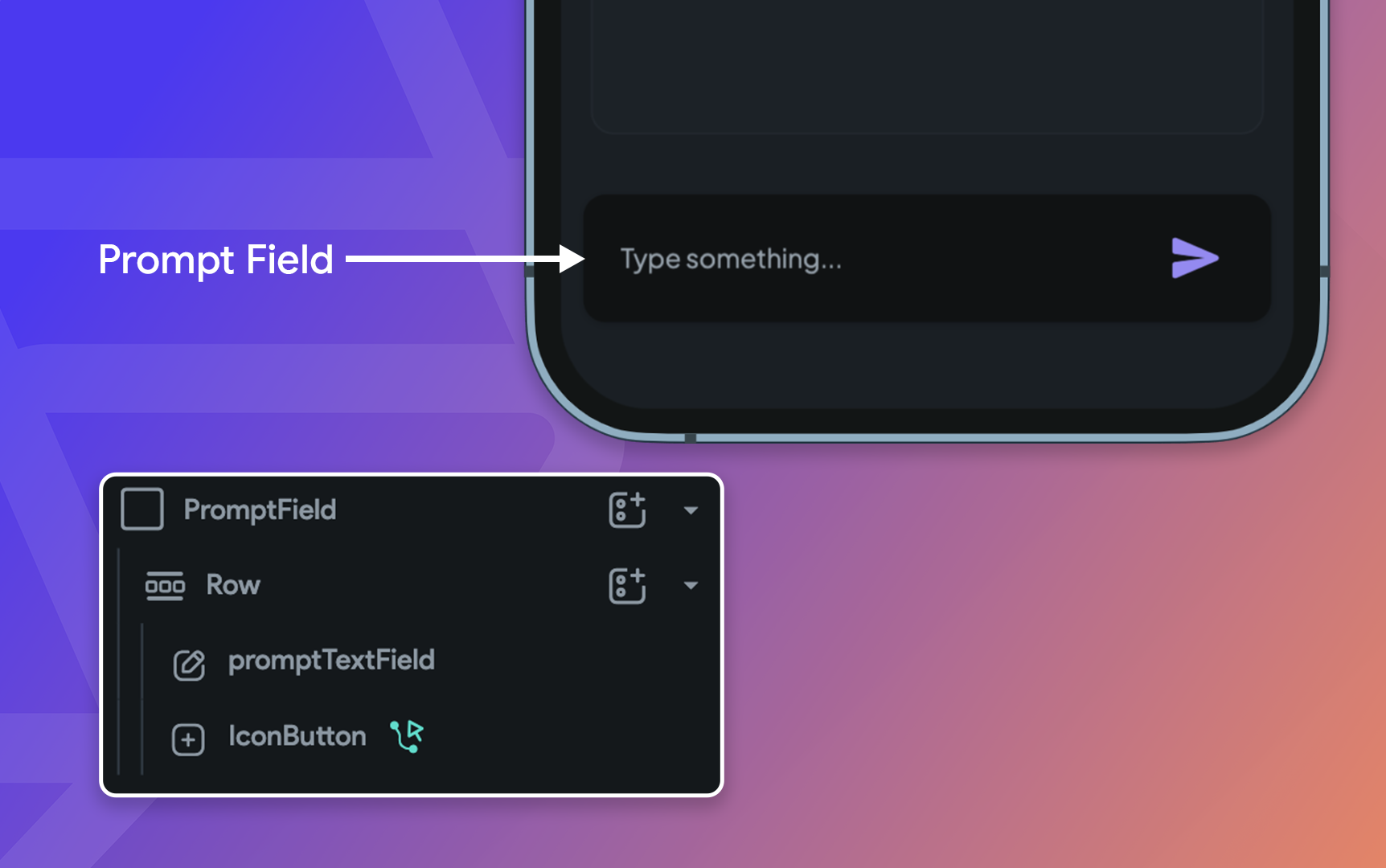 The API query should be run when the user types a prompt in the TextField and clicks on the Send icon button. Follow the steps below to implement this: