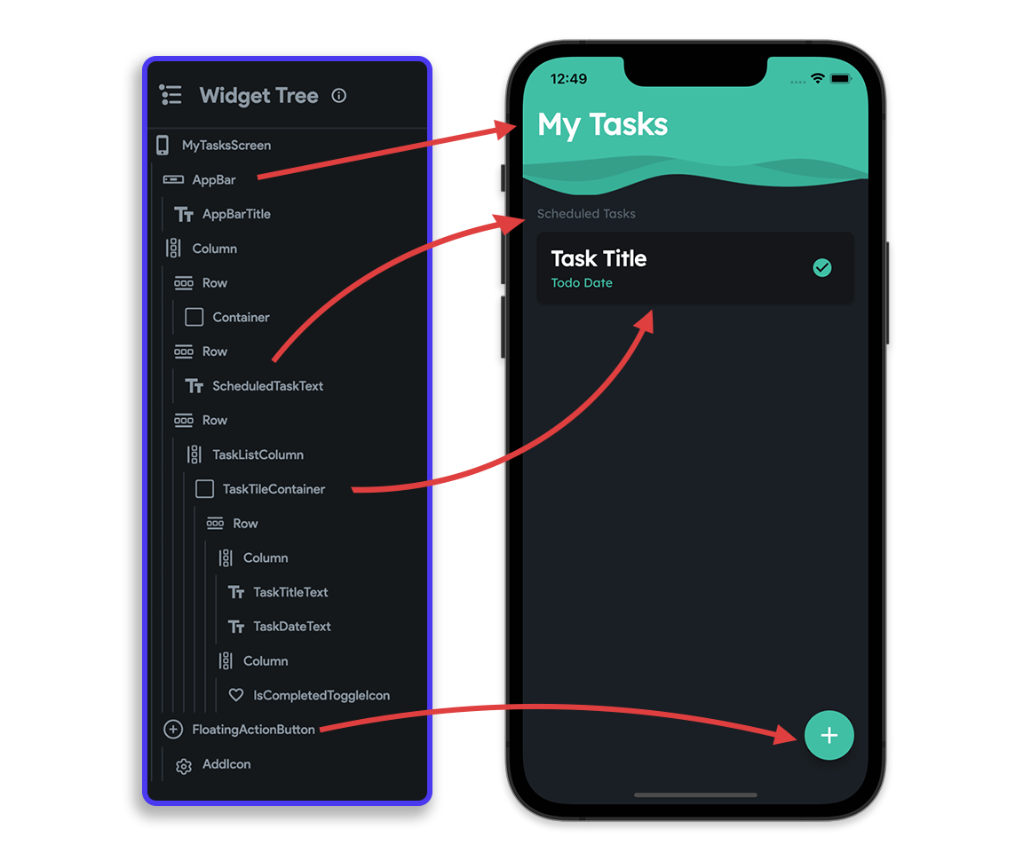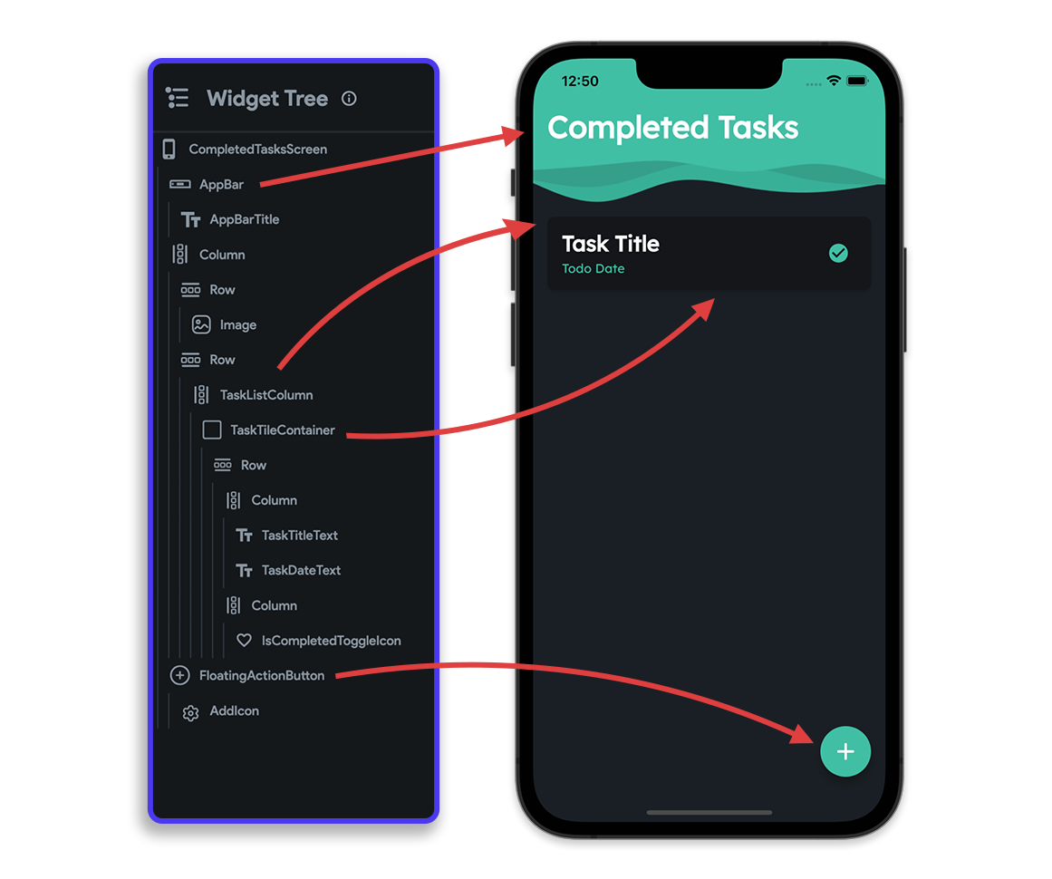 Similarly, tasks can also be displayed on the CompletedTasksScreen. Here, you need a second filter to filter the data according to the field is_done and show only those with the value True.