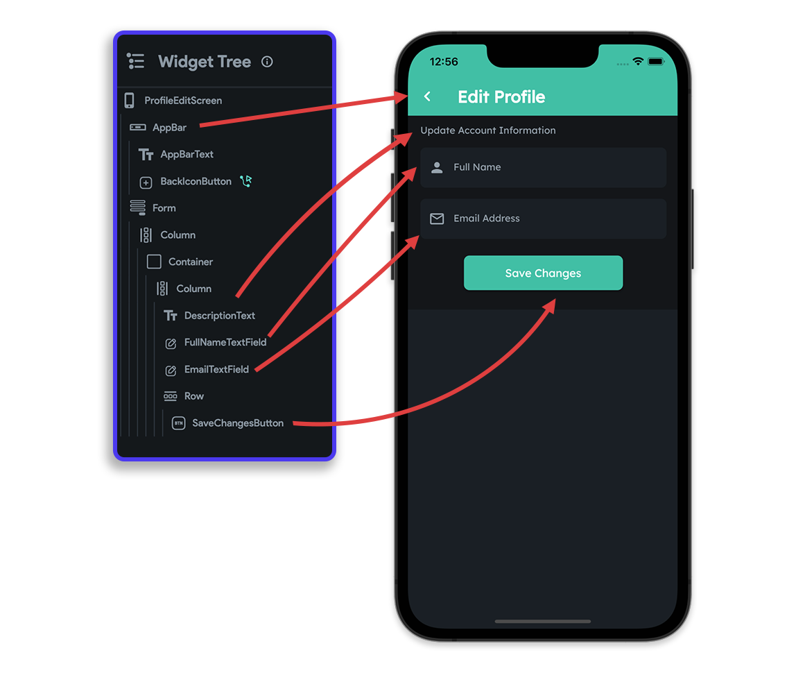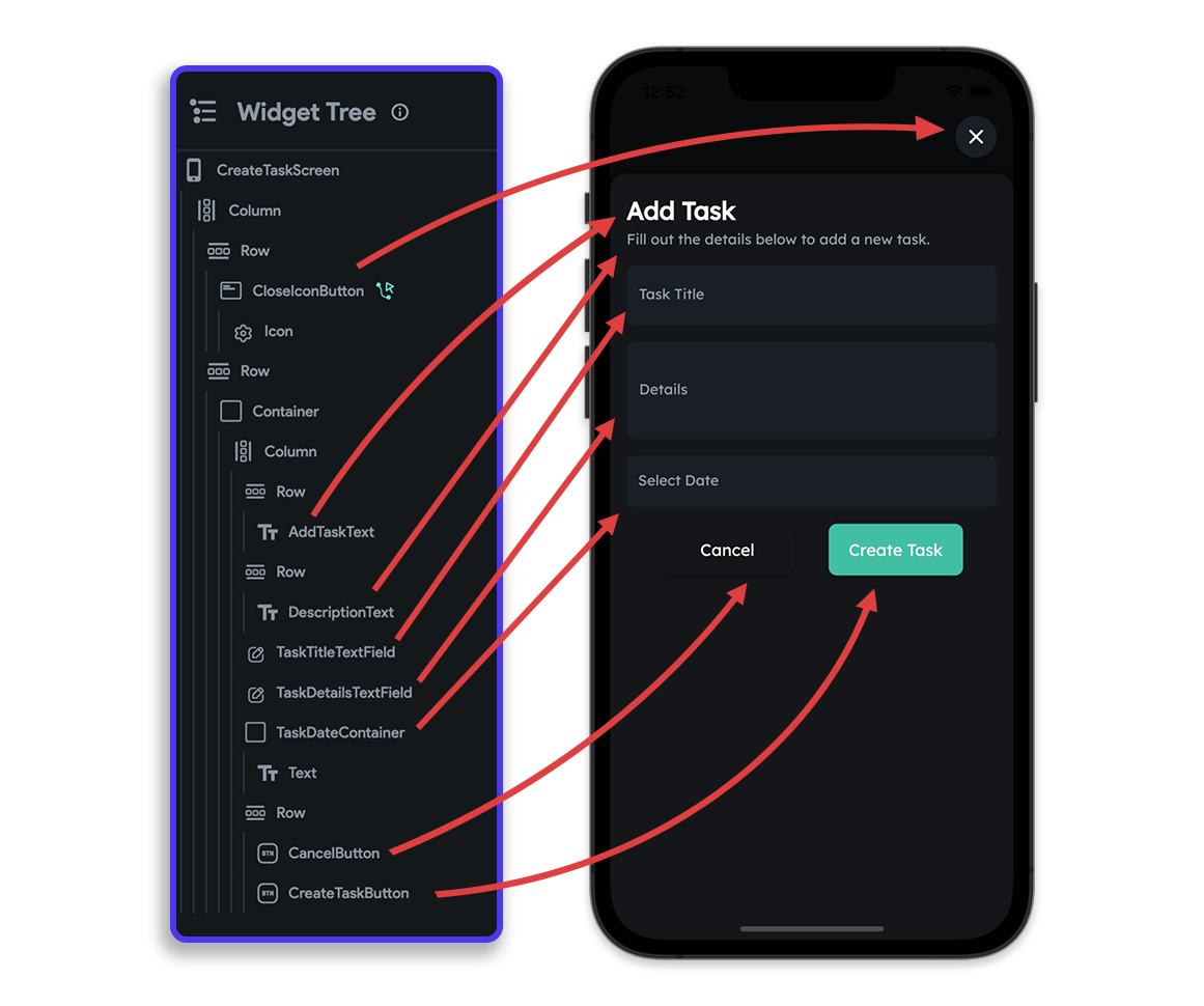 - For the title and description fields, use Value Source as From Variable, Source as Widget State, and select the respective TextField under Available Options.