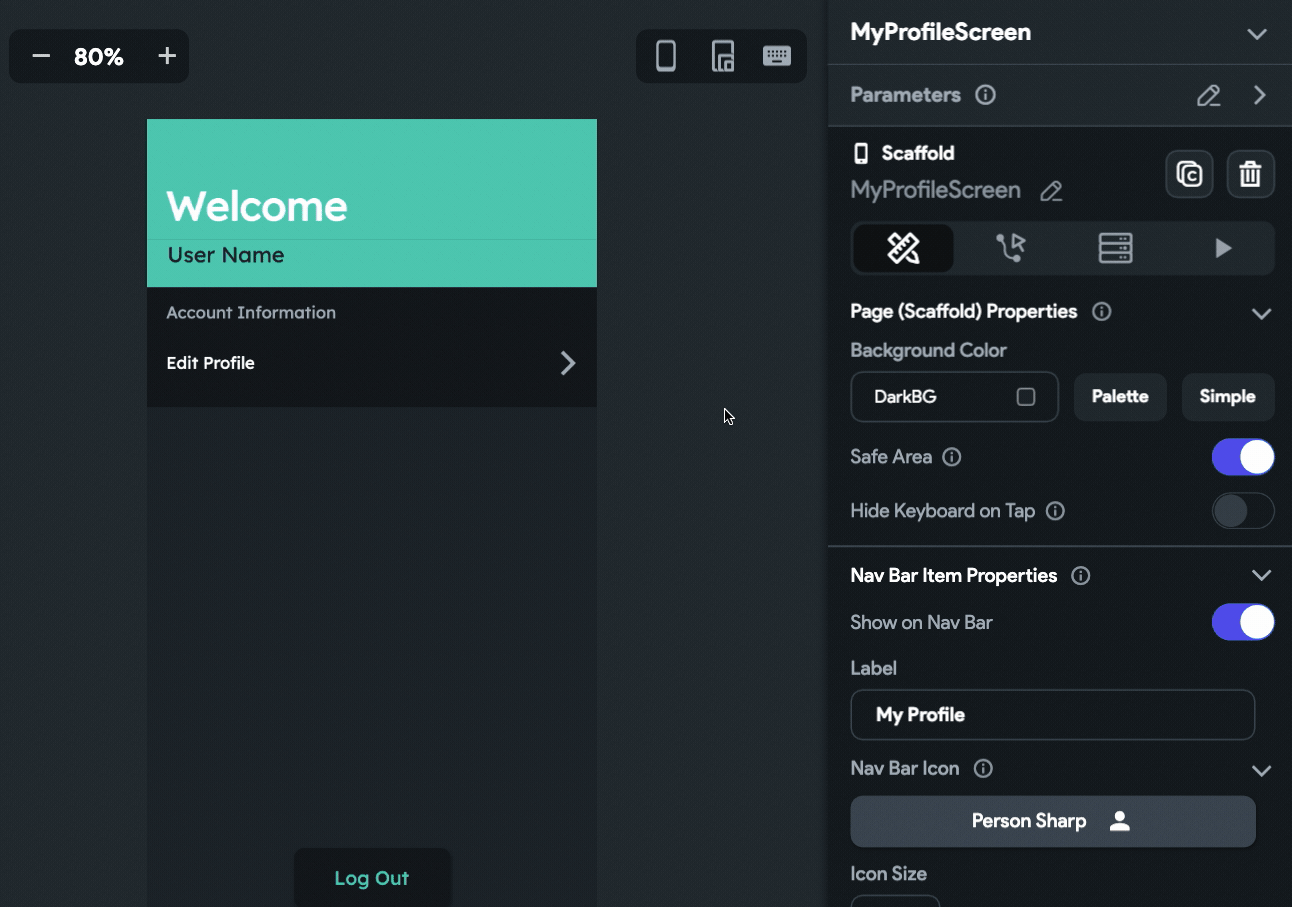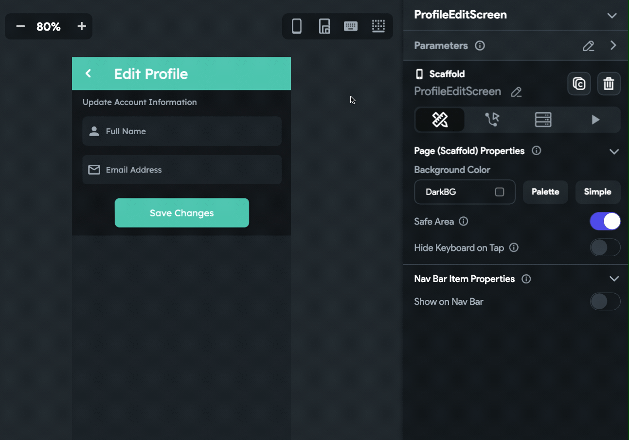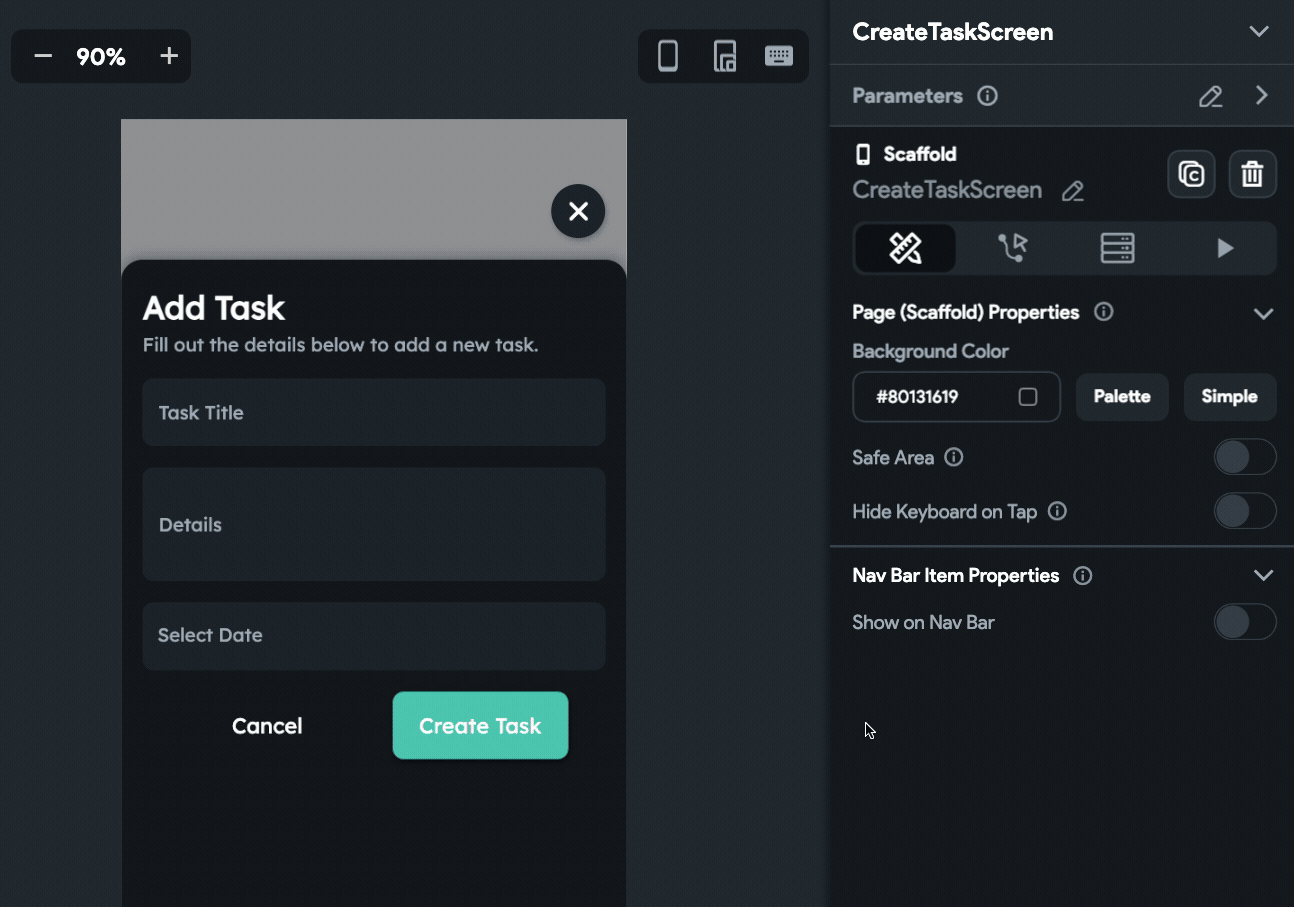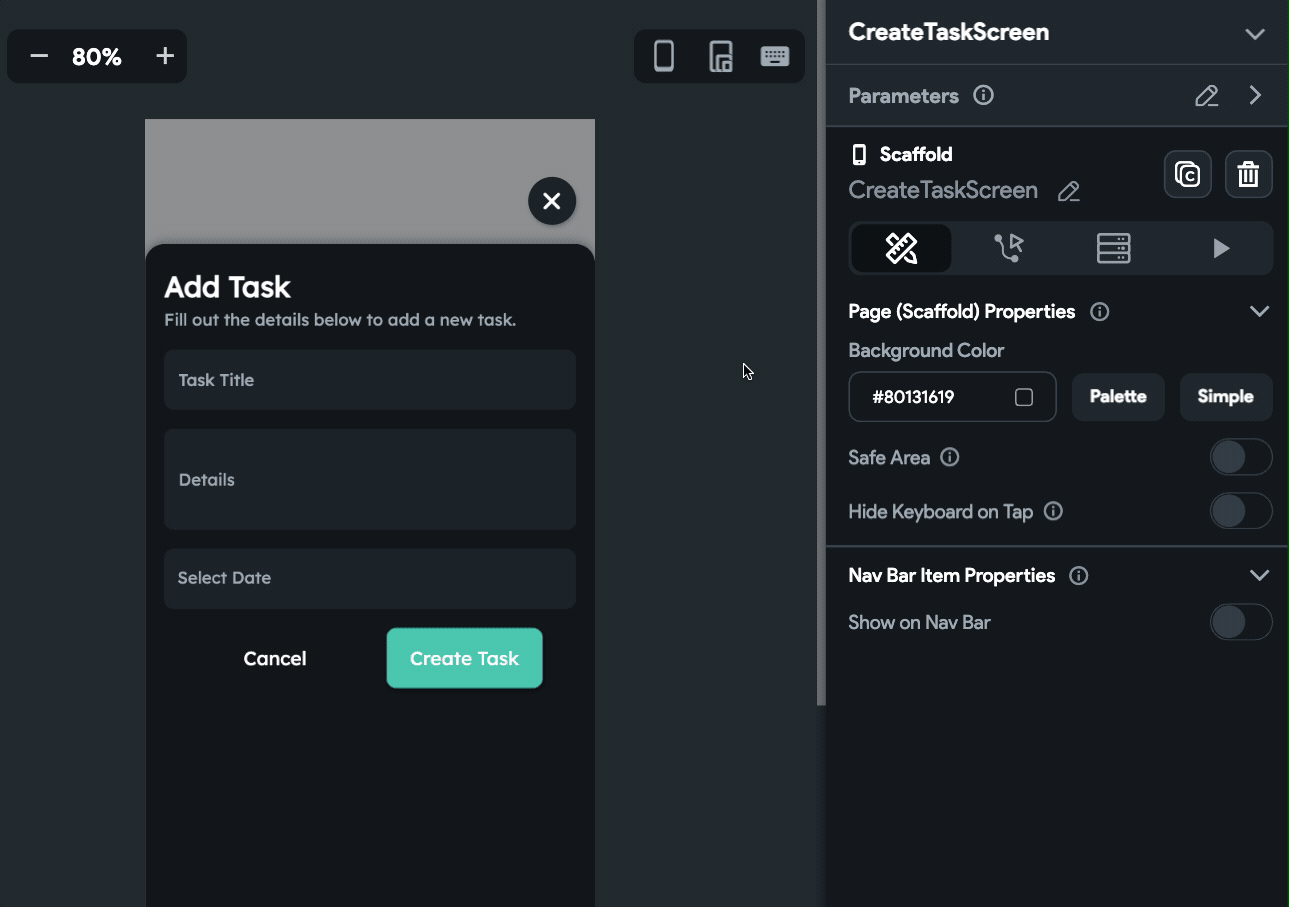 We also need the record data on the TaskDetailsScreen. Let's pass it inside the Navigate action as a parameter: