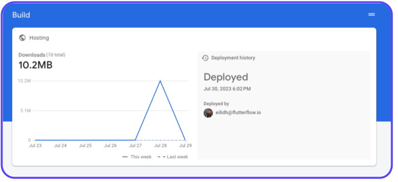 That's it - you've deployed your web application! From here, you can go to your Firebase project console and see all the useful statistics on deployment history, app size, and more. You can also add a custom domain if you'd like to change it to one of your own.