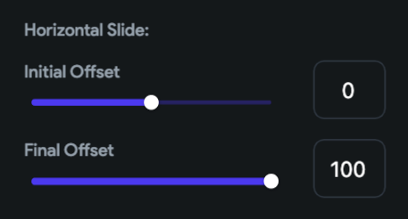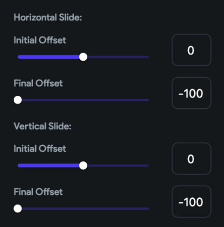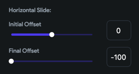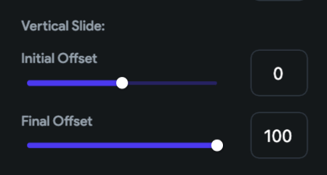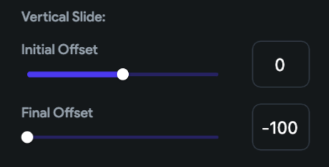 Similarly, to animate the position upwards, under the Vertical Slide section, set the Final Offset to a negative value (for example, -100).