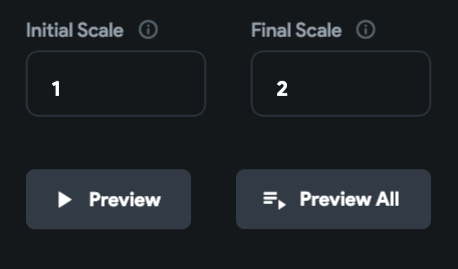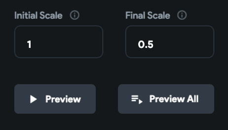 For performing a scale down animation, set the Initial Scale to 1 and the Final Scale to 0.5.