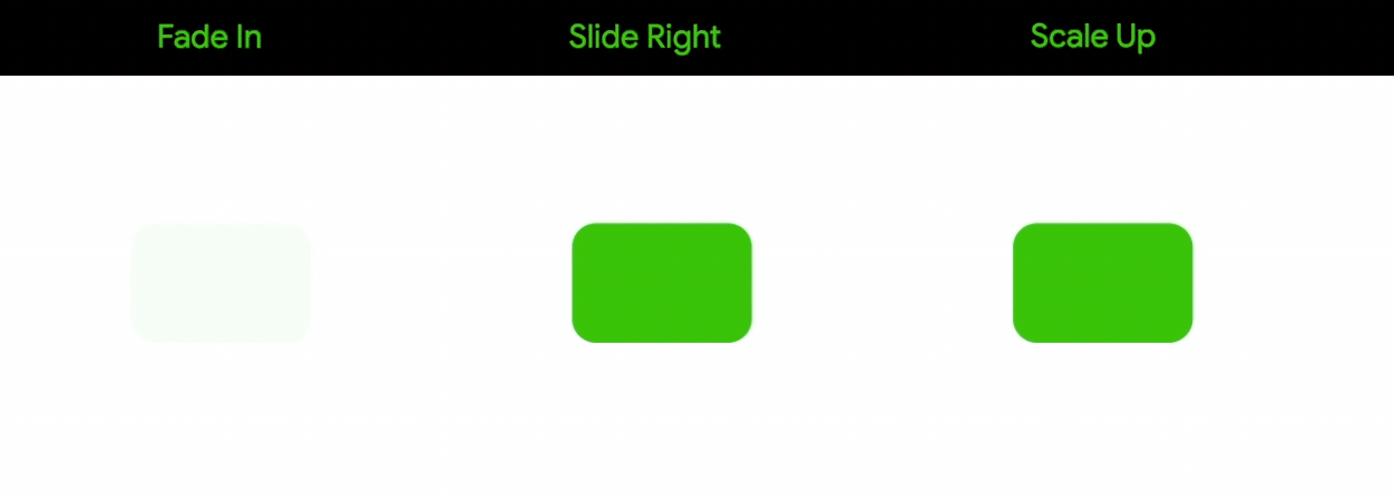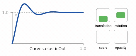 - Scale animation: Animates the size of a widget from an initial value to a final value to increase (scale up) or decrease (scale down) the size.