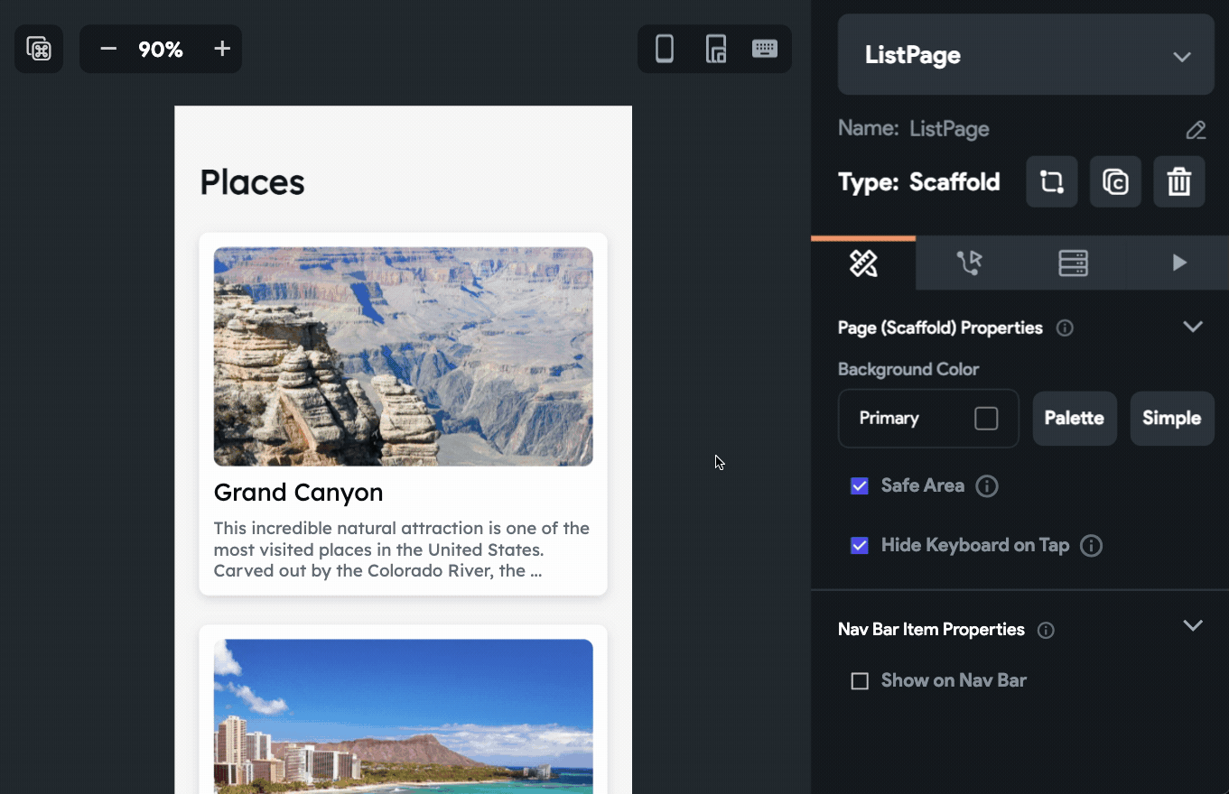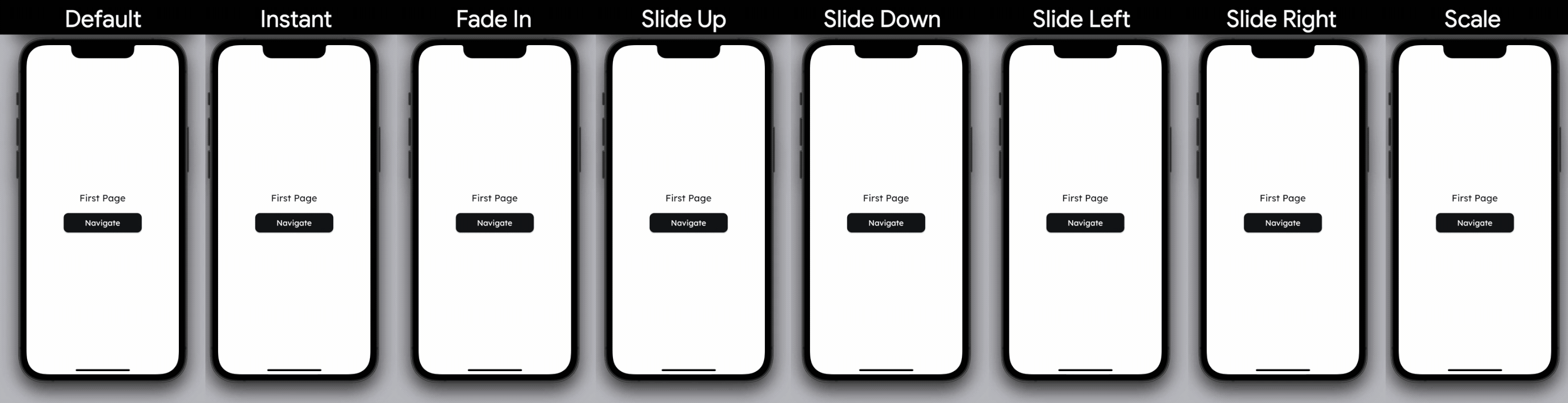 The animation that plays while going from one page of the app to another is known as the navigation transition. While defining a Navigate To Action on any widget, you will notice the transition type is set as Default but you can change that animation easily.