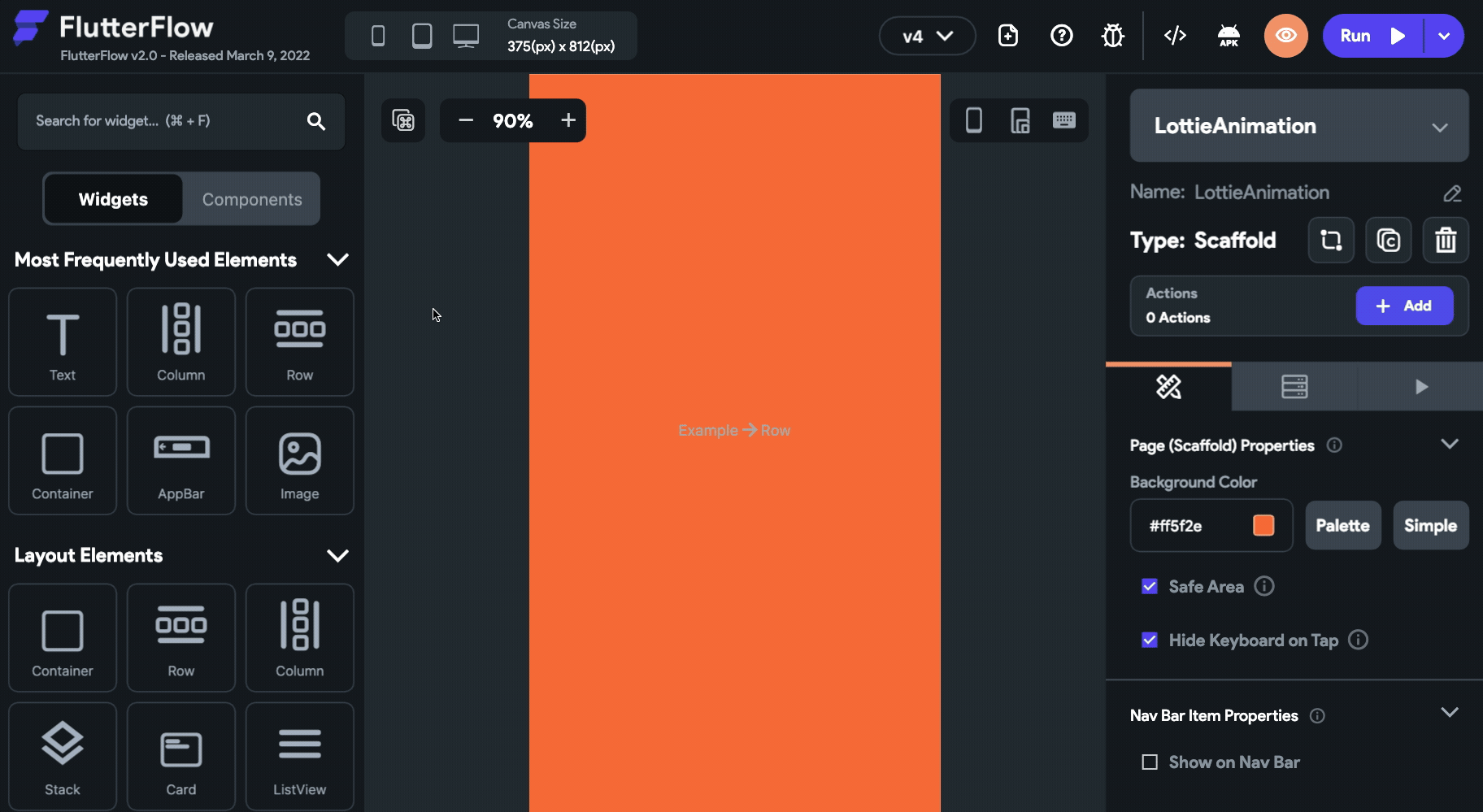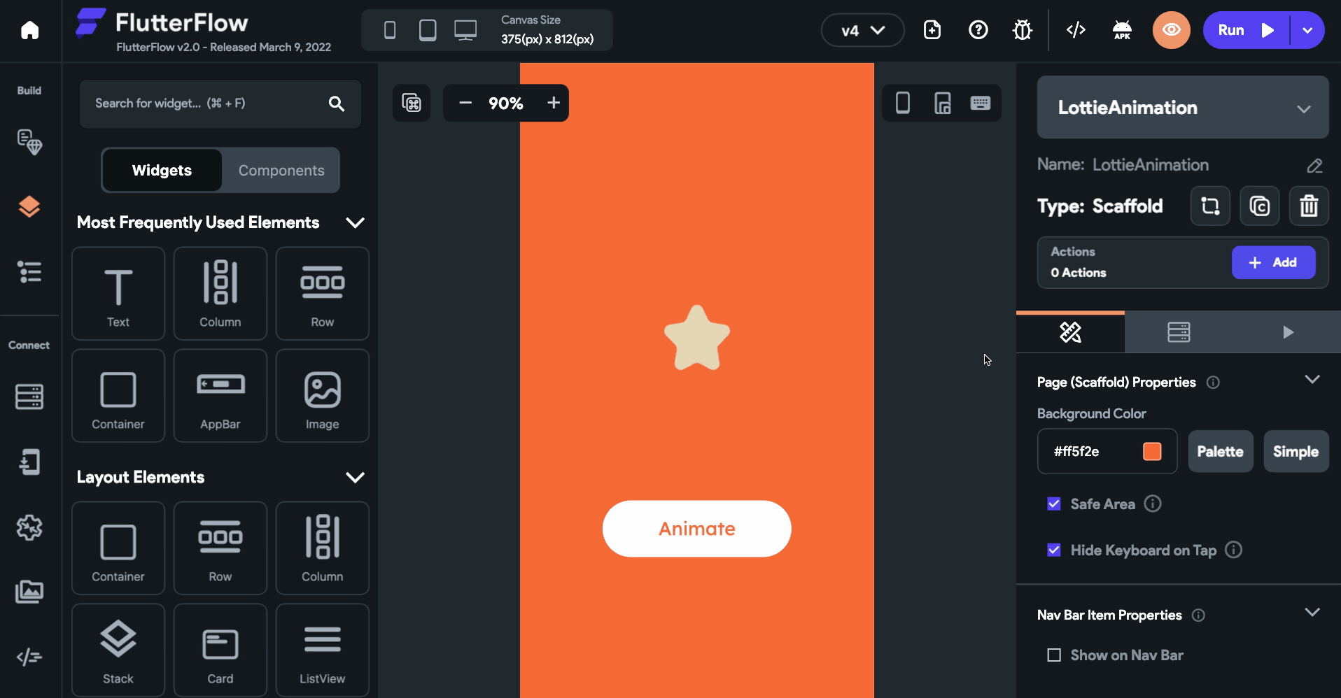 - Drag and drop the LottieAnimation widget onto the canvas.