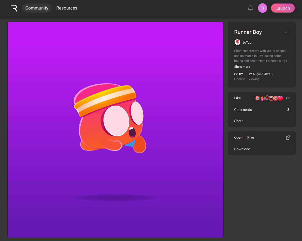 There is a community maintained by Rive, filled with awesome creations that you can import and try out inside your app.