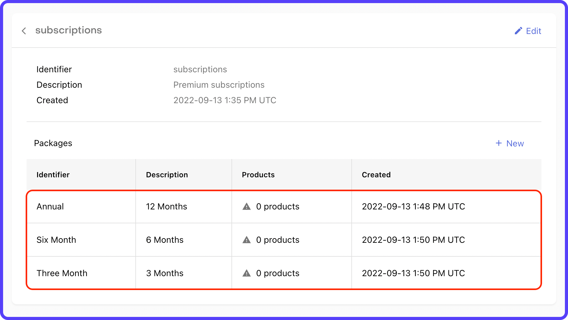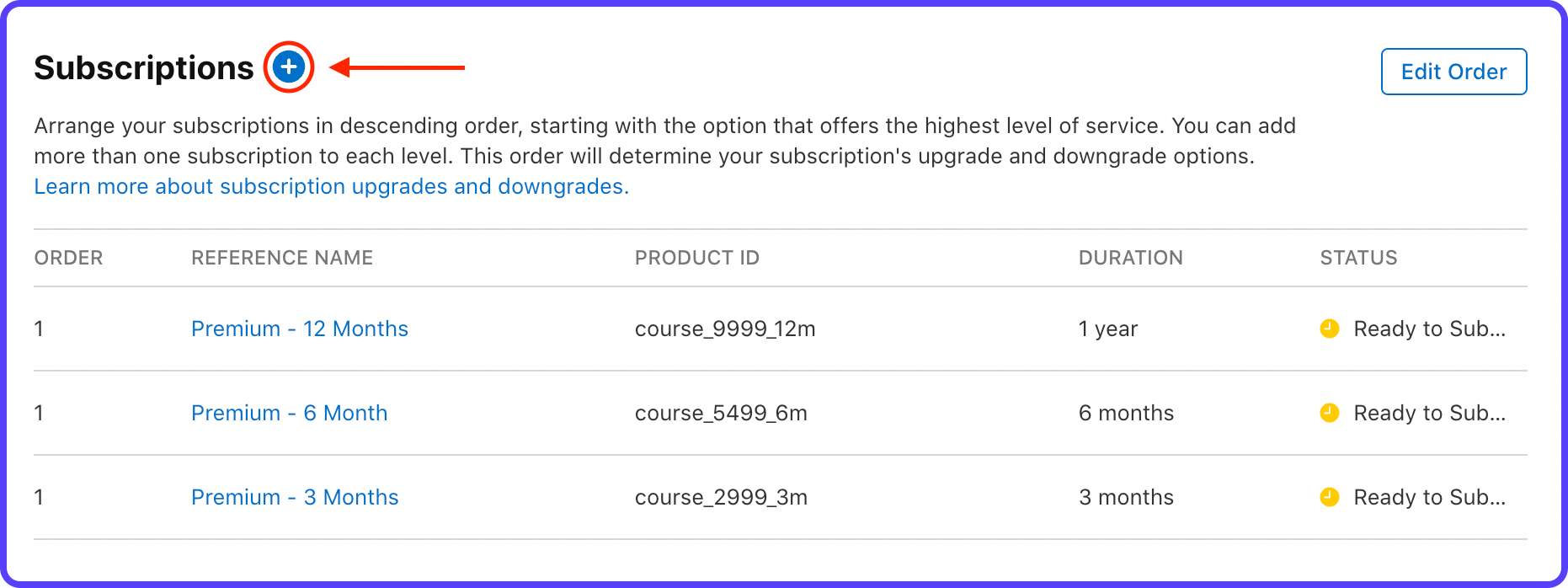20. This completes the addition of a subscription. You can follow similar steps for adding the other subscription plans as well, use the plus ("+") button next to Subscriptions.