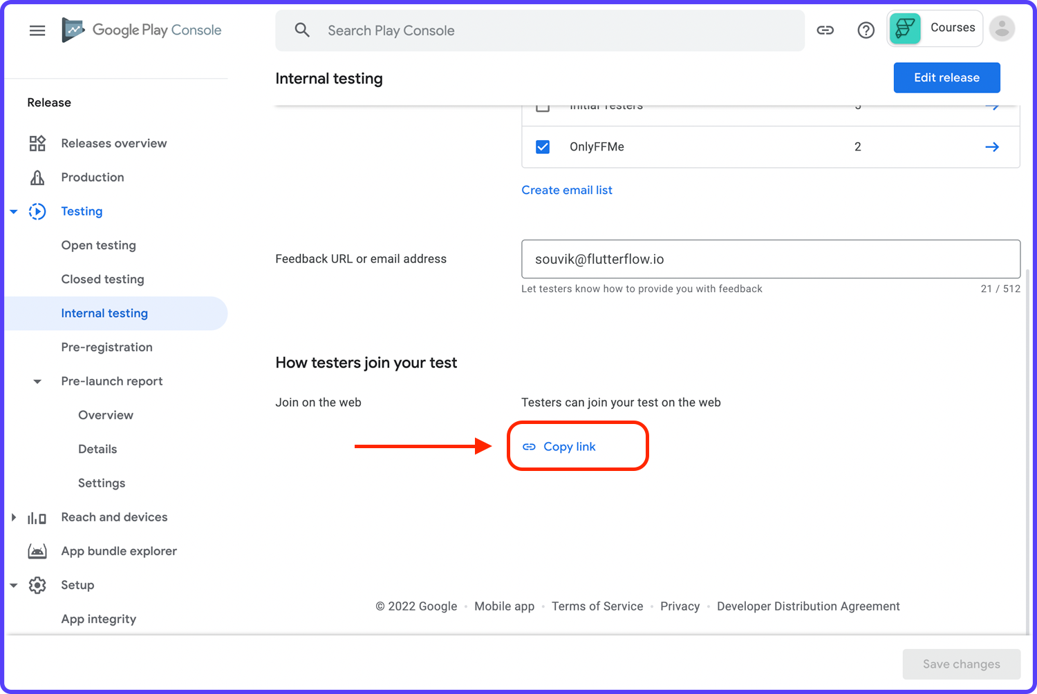 - Go to the Google Play Console.