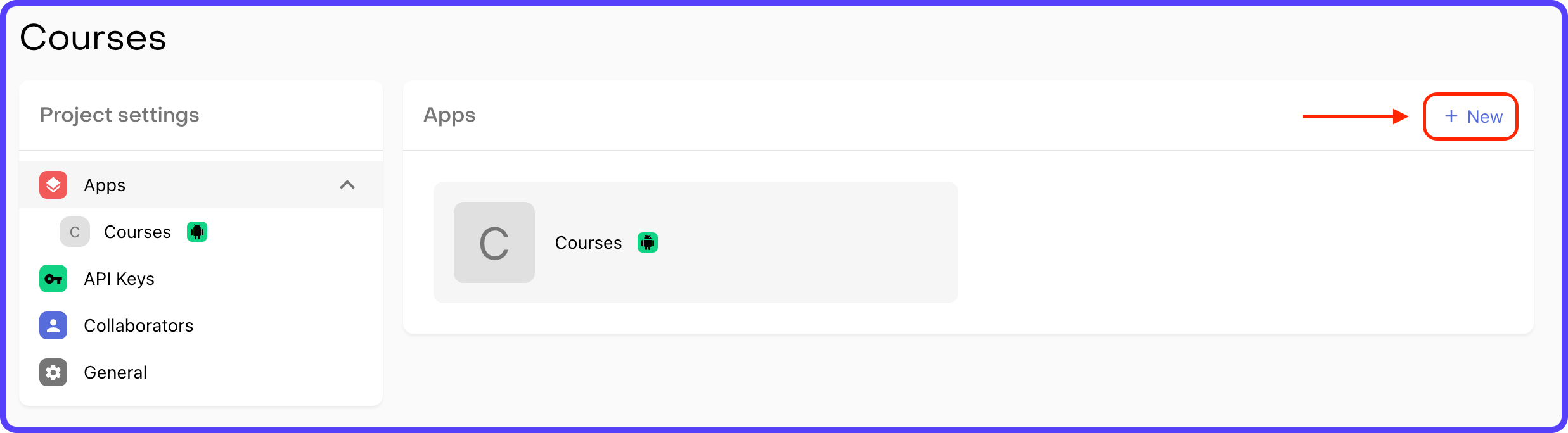 1. Go back to the Apps page and click on "+ New".