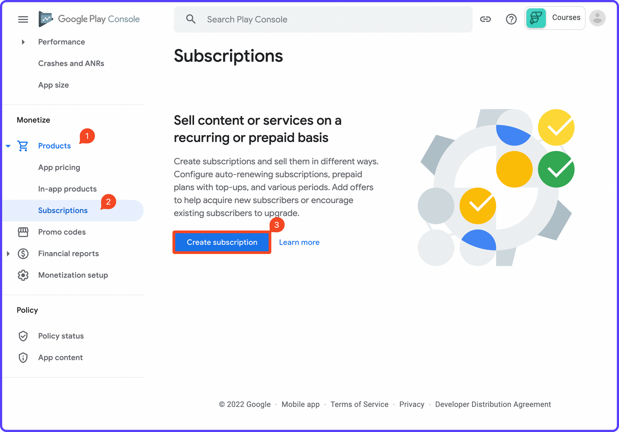 - From the left menu, under the Monetize section, expand the Products category. Select Subscriptions.