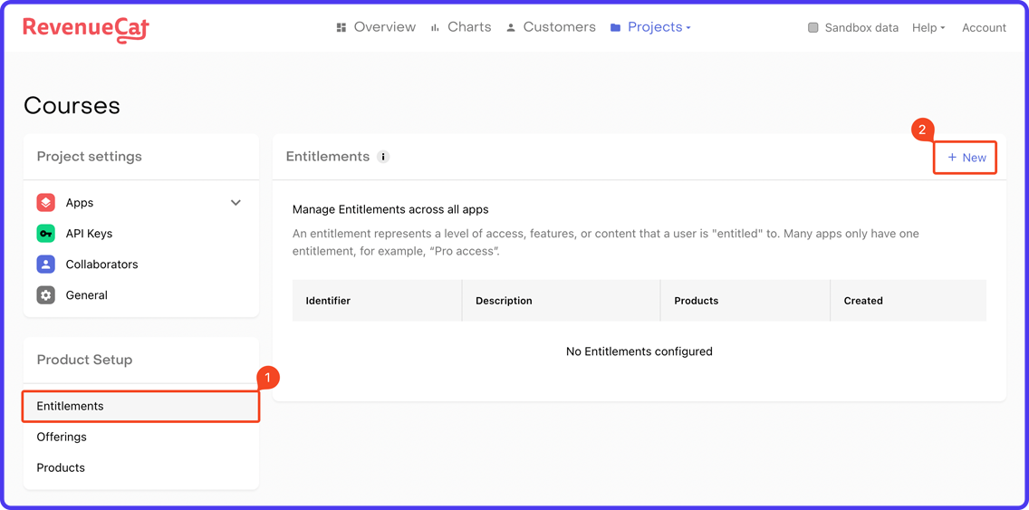 1. Select Entitlements under the Product Setup section. Click "+ New".