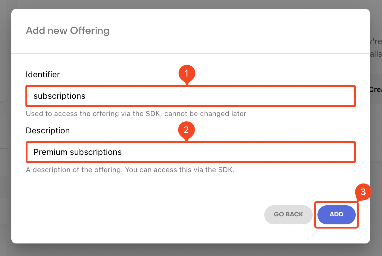 2. Enter an Identifier and Description for the offering. Click ADD.