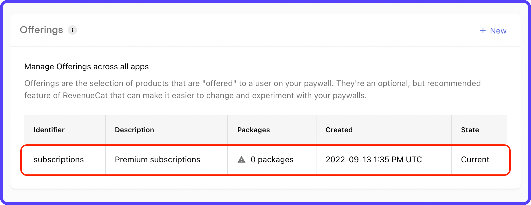 This configuration describes the product offerings to be shown on the paywall. Each offering must have one or more associated Packages (group of equivalent products across different platforms).