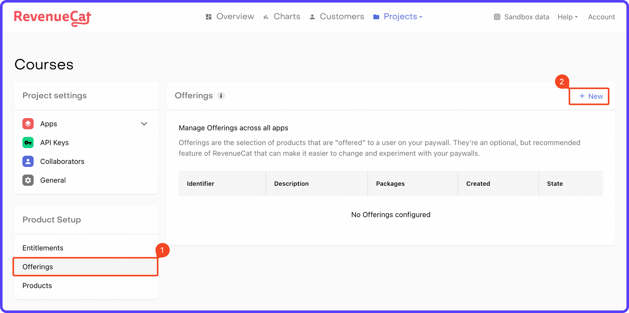 1. Select Offerings under the Product Setup section. Click "+ New".