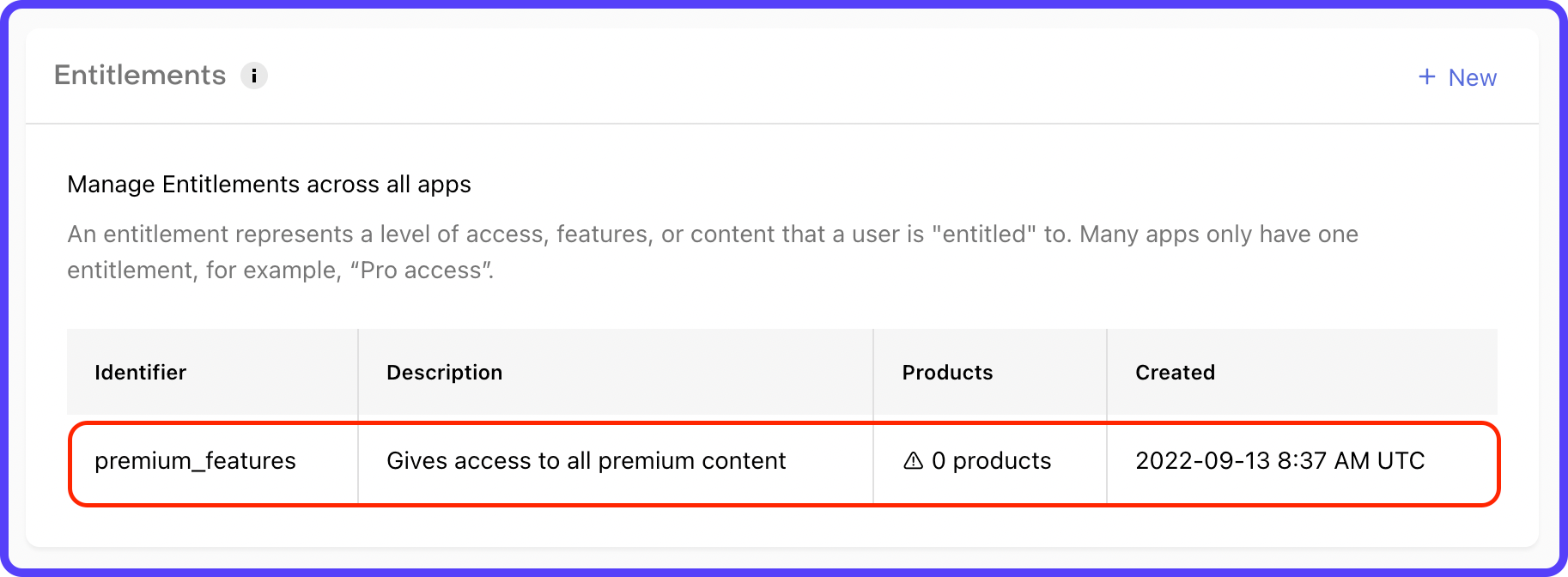 In our app, we just need a single entitlement – premium_features.