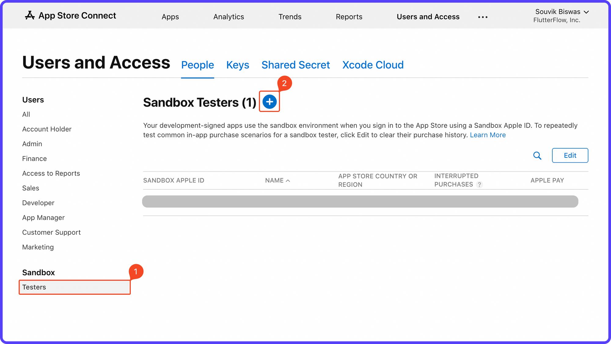 - Select Sandbox Testers from the left menu.