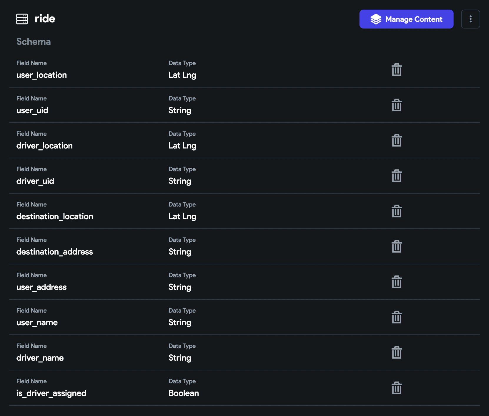 To provide the backend infrastructure required for managing rides and tracking live location, we'll use a Firestore database. Firebase comes integrated with FlutterFlow, making it even simpler to set up and manage the database from within the FlutterFlow platform.