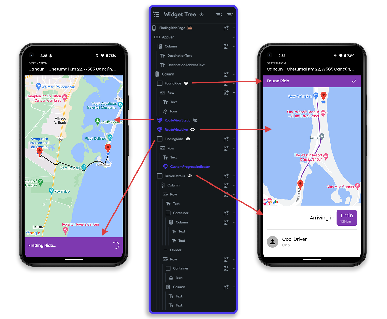 This is one of the most important and complex pages within the rider app that we'll be covering in detail. Just to give your some context, this is the page where we'll include the two custom widgets.