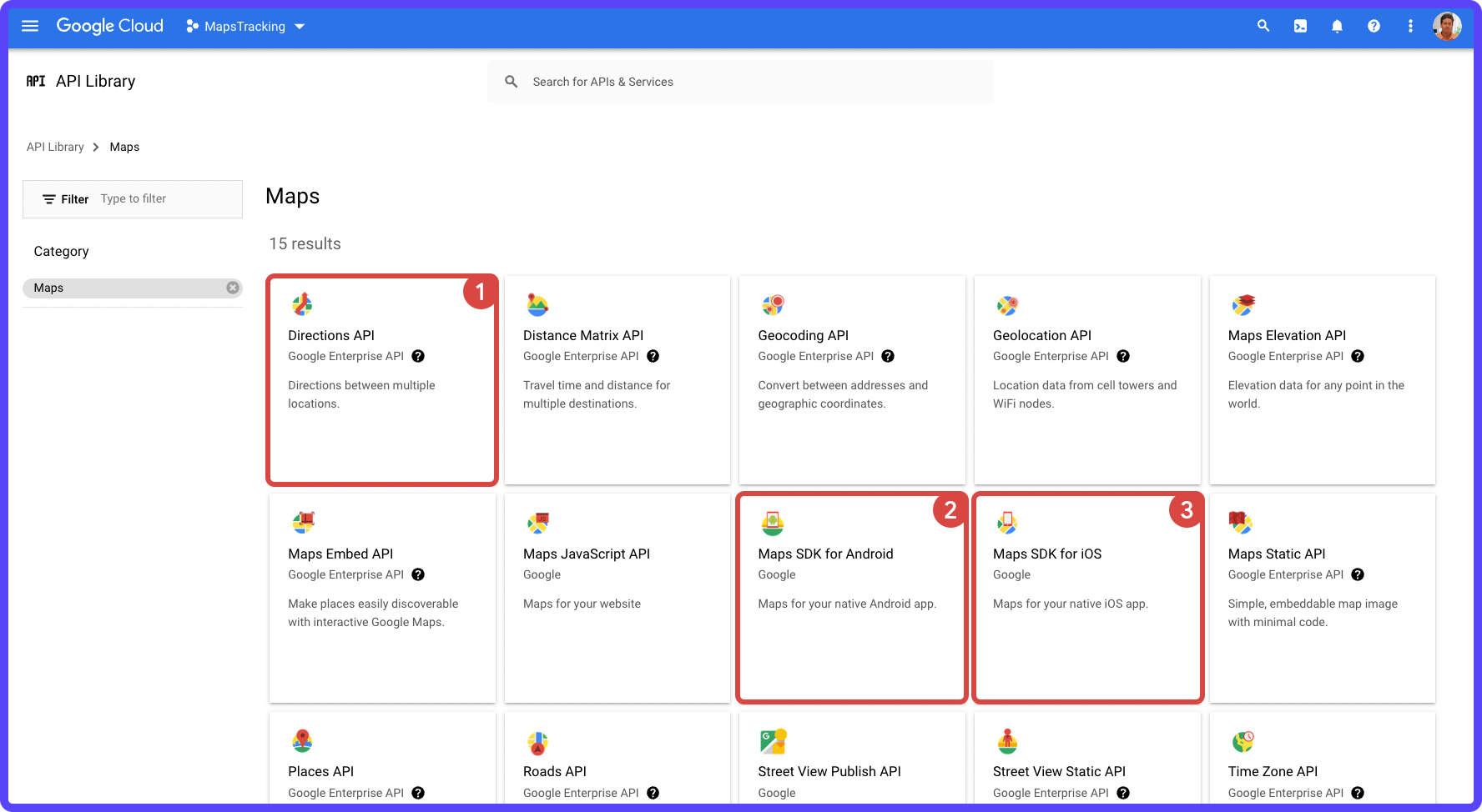Enable the required Maps APIs by following these steps:
