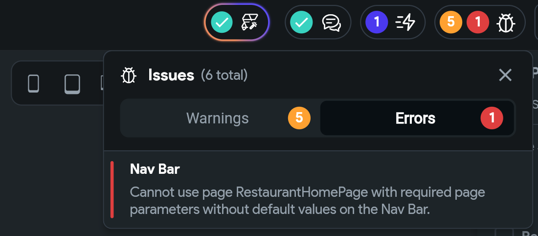 Otherwise, the page cannot be added to the bottom navigation bar from the Hub project and will trigger an error like: