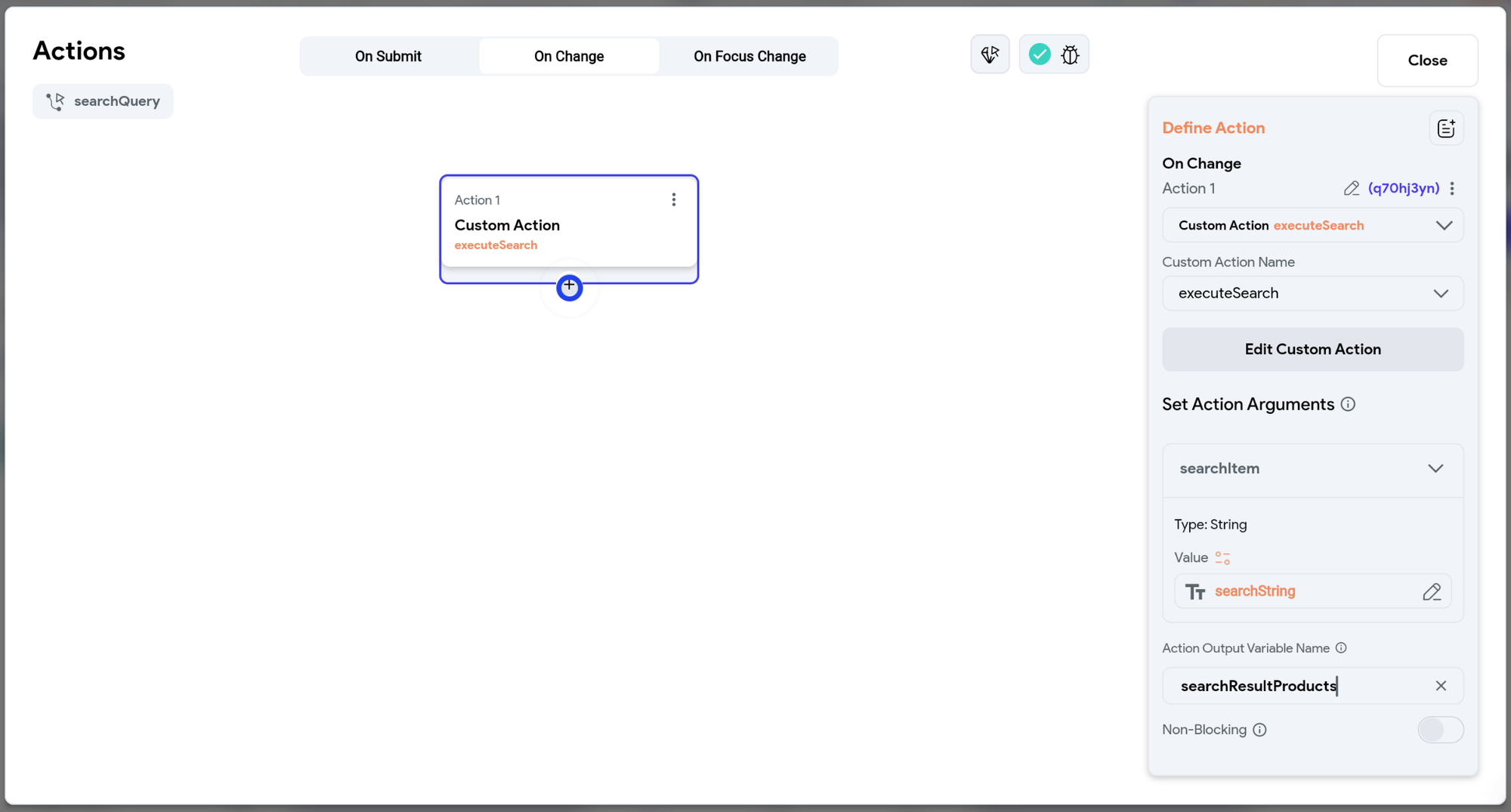 Once it compiles, you can use your action inside any Action Flow. For example, you could trigger it when a user clicks a button and then display the returned value in a text widget.